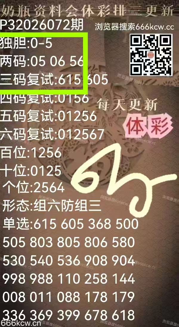 《奶瓶资料》上期福彩准独胆2-5,准两码25。体彩准独胆5,准三码复试615。