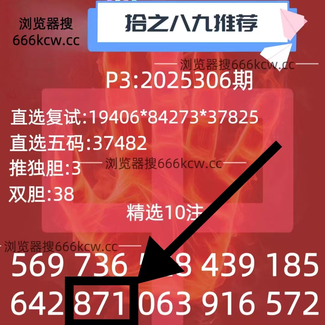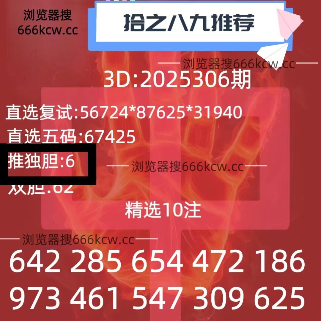 《拾之八九》上期福彩准独胆6,体彩准组六871。
