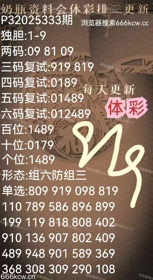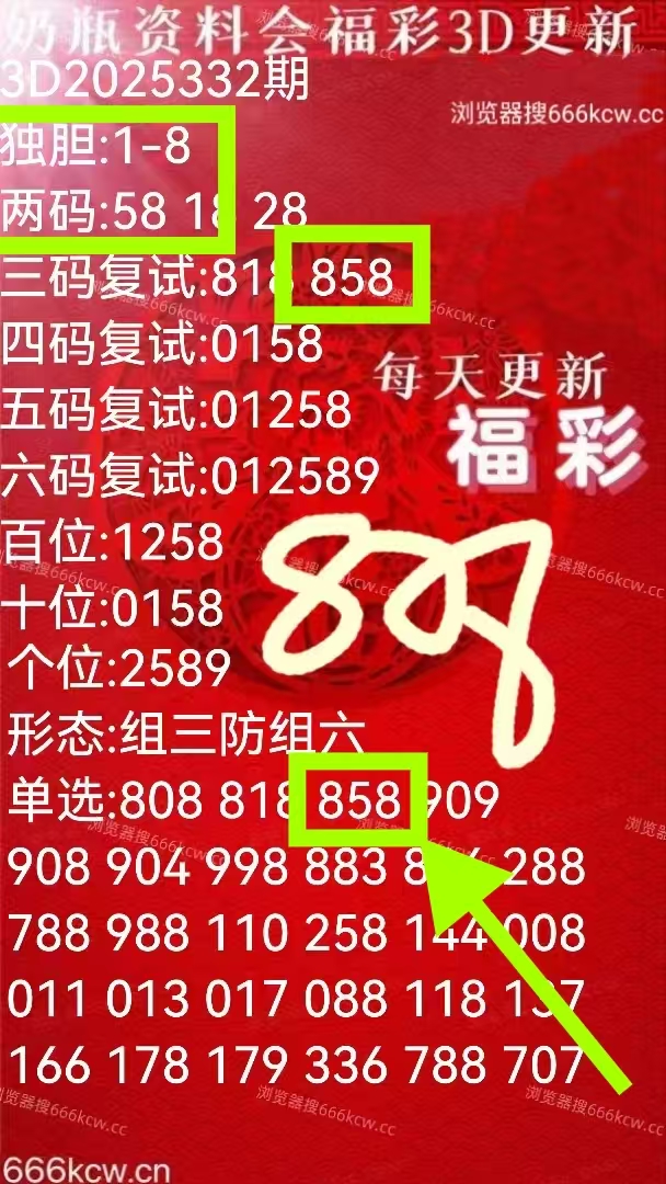 《奶瓶资料会》上期福彩准三码复试858,准独码8,准两码58。体彩准组三399。