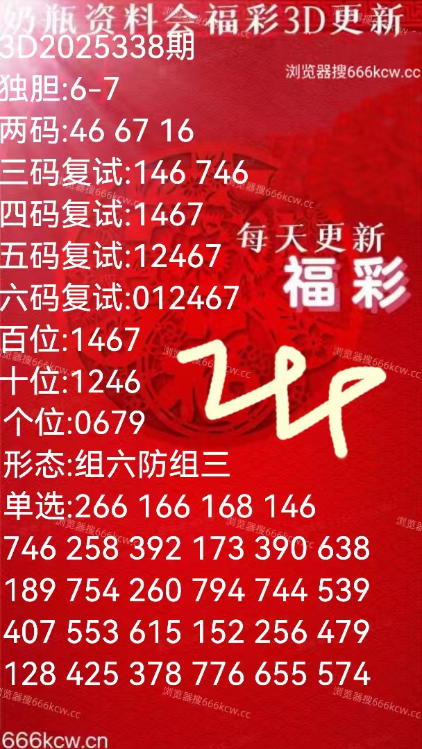 《奶瓶资料会》上期福彩准独胆7,准两码67。