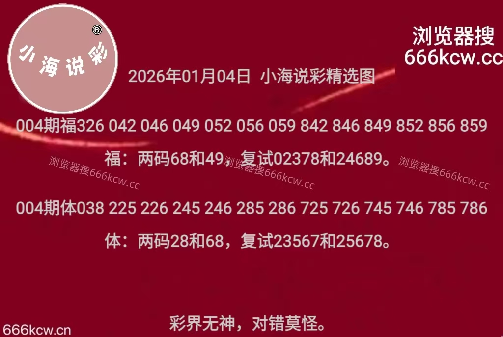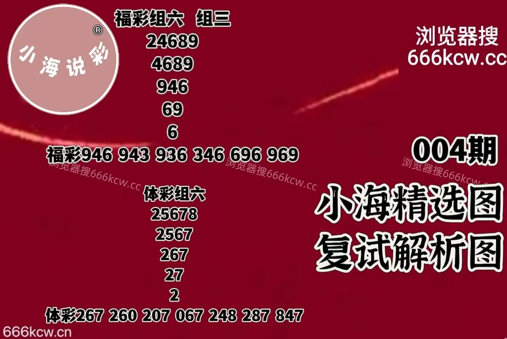 《小海说彩精选图》上期体彩准组六806,准五码复试02689。