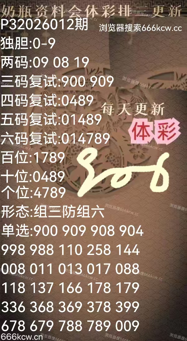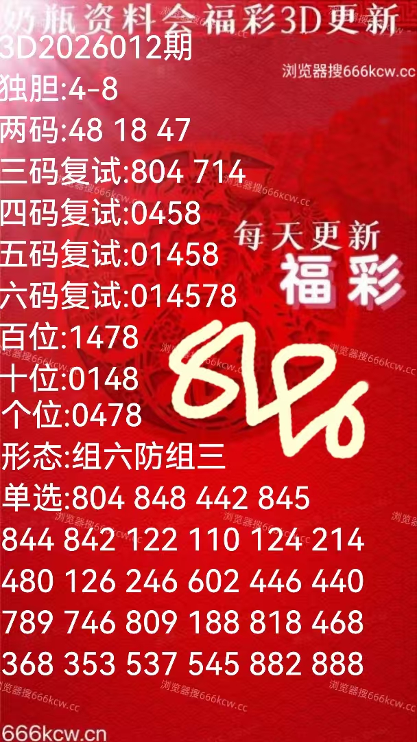 《奶瓶资料会》上期福彩准组六746,准独胆7。