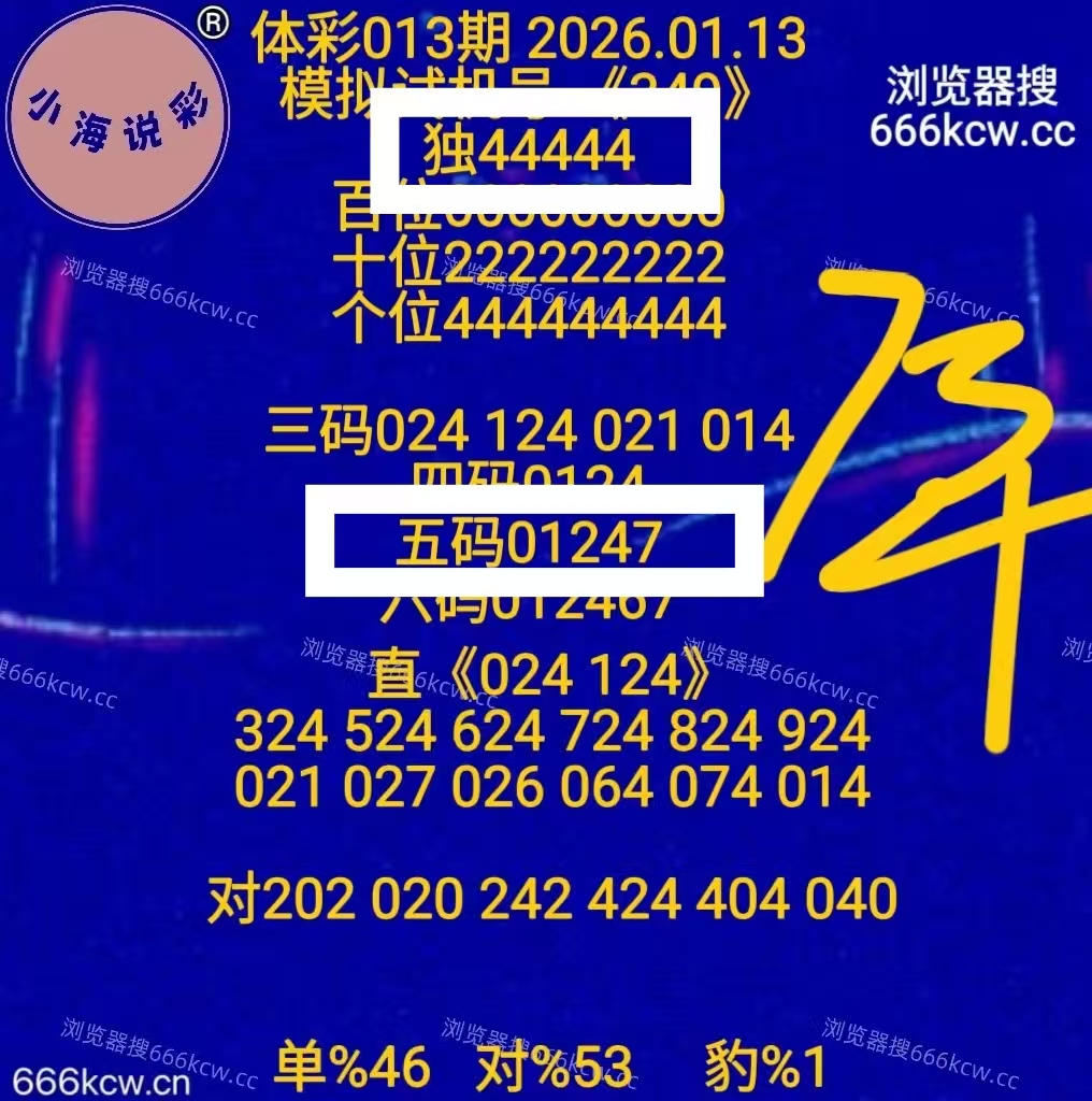 《AA小海说彩》上期福彩准组六315,准独码3,准十位定位1,准五码复试。体彩准独码4,准五码复试。