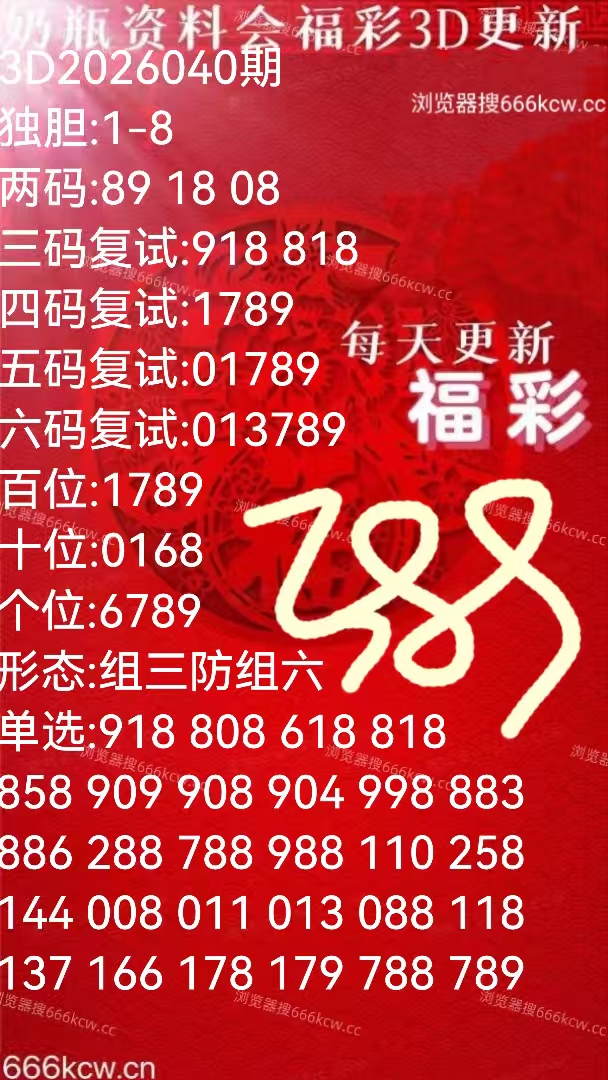 《奶瓶资料》上期体彩准组六258。